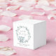Ballotins de douche pour bébé mignons avec "Un petit Merci doux" et "Un petit cacaoyer doux est en route" dans un mélange de typographie moderne et un script élégant avec un balai cardiaque, et une aquarelle d'un éléphant bleu pastel dans une couronne de vert d'eucalyptus sauge. Personnalisez avec le nom de la future mère et la date de la douche.