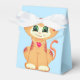 Mignonne chatte à table de gingembre sur ballotin de Merci bleu clair. Beau ballotin pour toutes sortes de fêtes et d'événements. Le Merci texte peut être personnalisé.
