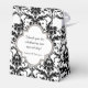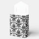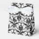 C'est une boîte de faveur de mariage particulièrement jolie, avec un damas noir vintage sur motif blanc. Le dos a une bannière blanche doublée de gris avec votre texte customisé en noir. Faites-le dire ce que vous voulez !