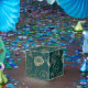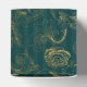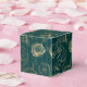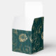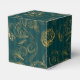 Boîte de faveur en damas de roses vintage avec des accents de sarcelle et d'or.