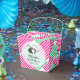 Boîte de faveur de style à emporter avec une dame dans son chapeau Derby sur le côté avec votre message sur un fond de rose chaud, de vert et de blanc en bandes diagonales. Une façon amusante de remercier les invités d'être venus à votre douche de mariage sur le thème de Derby ou de changer le texte et de l'utiliser pour une fête d'anniversaire ou toute autre occasion. Dimensions : 2" de large x 2" de long x 2,75" de haut. Articles CORRESPONDANTS dans notre magasin.