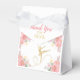 Elégant design de roses rose florale avec danseur d'or laissant tourbillons dorés pendant qu'elle saute et tourbillonne. Cette boîte a un espace pour une note de remerciement customisée sous le rabat.