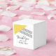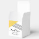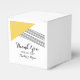 Des boîtes de mariage géométriques modernes et branchées favorisent les mariages avec un triangle jaune et un accent à rayures minces. Ces boîtes simples mais élégantes sont configurées pour être facilement customisées avec vos informations de mariage. Pour plus d'options de personnalisation, cliquez sur Customiser.