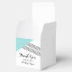 Des boîtes de mariage géométriques modernes et branchées favorisent les mariages avec un triangle turquoise et un accent à rayures minces. Ces boîtes simples mais élégantes sont configurées pour être facilement customisées avec vos informations de mariage. Pour plus d'options de personnalisation, cliquez sur Customiser.