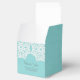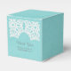 Simple et sophistiqué Elegant Lace Wedding Favor Boxes avec un motif de dentelle blanche sur un arrière - plan en papier vintage clair turquoise faux. Ces boîtes classiques et élégantes sont parfaites pour un mariage rustique. Facile à customiser avec vos détails mariages. Cliquez sur "Customiser" pour trouver d'autres options de personnalisation.