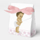 Adorable ballotins baby showers afro-américains roses. Vous pouvez ajouter du texte, changer la couleur de l'arc et ajouter une couleur arrière - plan de votre choix à ce mignon ballotin de baby shower de princesse ethnique rose.