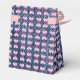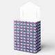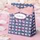 Cet adorable ballotin a un arrière - plan à l'allure denim avec un motif de coeurs teints en cravate rose et blanc. Sur le rabat avant, il y a un ovale blanc avec une bordure rose coordonnant. Pour finir le design il y a un arc rose. Les vaches sont en quatre couleurs. Le texte à l'intérieur de l'ovale peut être customisé.