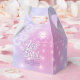 Élégant design de boîte de faveur personnalisée pour enterrement de vie de jeune fille disco dans de belles couleurs dégradées allant du lavande au bleu pervenche et au rose avec une boule disco funky, une police rétro glamour et un fond de lumières disco scintillantes. Ce design élégant et sophistiqué est facilement adaptable à tout dîner spécial et/ou événement dansant. Recherchez ID928 pour voir d'autres produits de cette collection tendance.