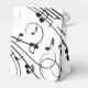 Design blanc avec barres de musique bouclées et notes de quartier dansantes