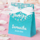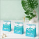 Un sac de faveur élégant et glamour pour une fête d'anniversaire, une baby shower ou une douche de mariée. Faux paillettes de couleur dégradée sarcelle, bleu-vert avec saupoudrage de faux diamants. Modèles pour un nom et une date. Date de naissance ou date de la fête/anniversaire. Avec le texte : Merci ! Lettres blanches et sarcelle. Le nom est écrit avec un style d'écriture manuscrite.