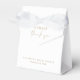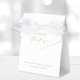 Boîte de faveur de douche de mariage blanche chic avec "Un doux merci" dans un script or moderne et une typographie élégante sérif or, le nom de la mariée et la date de la douche.
