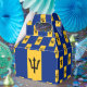 The Barbados flag is a vertical tricolour with in the center an emblem. The used colors in the flag are blue, yellow, black. The proportion of the Barbados flag is 2:3. Le Flag de Barbade a adopté en 1966.