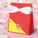 Célébrez votre événement spécial avec cette charmante boîte à cadeaux de tente à thème sicilien, nouée avec un ruban de satin blanc élégant. Le devant présente le drapeau sicilien en rouge et jaune vifs avec la Trinacrie iconique, tandis que le dos est rouge uni avec une icône de la Trinacrie et un texte blanc personnalisé pour les noms, les dates ou un court message. Parfait pour les mariages, les anniversaires, les anniversaires de mariage ou les fêtes à thème sicilien, ces boîtes sont idéales pour contenir des bonbons, des petits gâteaux ou des souvenirs, ajoutant une touche personnelle et festive à votre célébration.