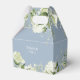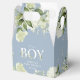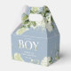 Un élégant C'est un garçon baby shower ballotin avec feuillage verdoyant et typographie moderne sur un arrière - plan bleu poussiéreux. Vous pouvez personnaliser avec votre propre message de remerciement sous le couvercle. Une façon parfaite de remercier vos invités ! Conçu par Thisisnotme©