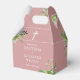 Cet élégant ballotin de baptême rose rose, vert eucalyptus et poussiéreux peut être personnalisé avec vos informations dans la typographie chic. Conçu par Thisisnotme©