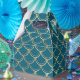Ballotin avec une fausse feuille d'or motif échelle de sirène contre un arrière - plan turquoise.