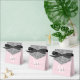 Boîte personnalisée élégante et moderne de couleur rose blush et paillettes argentées avec monogramme et initiale personnalisée. Ce design présente votre prénom dans un style manuscrit élégant avec un monogramme et une initiale, au-dessus d'un bloc de paillettes de couleur gris argenté sur fond rose blush ou rose bébé clair. Ces boîtes-cadeaux féminines et élégantes sont idéales pour offrir des cadeaux, des cadeaux pour les invités et des friandises lors d'une fête d'anniversaire à venir, d'un barbecue, d'un anniversaire de 16 ans, d'une réception de mariage, d'une baby shower, d'une soirée de célibataires, d'une douche de mariée, d'un anniversaire de mariage et plus encore.