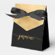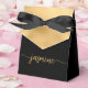 Boîte de faveur personnalisée élégante moderne et simple avec monogramme en feuille d'or et nom en écriture. Ce design présentant votre prénom dans une jolie typographie de signature de style lettrage manuscrit (ou calligraphie) avec un effet de queue en arabesque au-dessus d'un bloc de feuille de couleur or faux sur fond noir. Ces boîtes à cadeaux féminines et élégantes sont idéales pour offrir, des cadeaux, des cadeaux pour invités et des friandises lors d'une fête d'anniversaire imminente, d'un barbecue, d'un 16e anniversaire, d'une baby shower, d'une réception de mariage, d'une soirée entre filles, d'une douche de mariée, d'un anniversaire de mariage et plus encore.