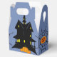 Un Ballotin amusant avec un thème Halloween. La couleur arrière - plan est gris-bleu ghoulish. A l'avant et à l'arrière de la boîte, il y a une silhouette d'une maison avec des citrouilles. Sur les côtés de la boîte il y a une araignée avec un étiquette qui dit : "TRICK OU TREAT". Ce texte peut être customisé.