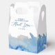 Cette ballotin de style gable à thème de plage présente une aquarelle peinte à la main dans les tons bleu clair, bleu classique et bleu marine, complétée par des touches d'or (feuille simulée). Le design abstrait ressemble au rivage, parfait pour un événement à thème plage, océan ou nautique. Les mots "Merci" sont présentés dans une police bleue et moderne. Le nom et la date peuvent être customisés pour l'événement spécial. Une adresse idéale pour une plage ou un événement sur le thème de l'océan.