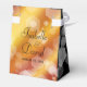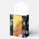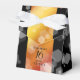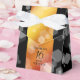 Célébrez avec style le 16e anniversaire de mariage de topaz doré avec ce ballotin commémoratif! Elégant serif noir et sans serif en lettres avec confettis hexagonaux sur un arrière - plan de mémoire rouge-jaune-orange profond bordé de barres noires ajoutent une touche mémorable pour cette occasion spéciale et cette étape importante. Personnalisez avec le nom du couple heureux et la ou les dates du mariage. Design © W.H. Sim. Voir plus sur zazzle.com/expressionsoccasions