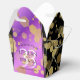 Fêtez leur 33ème anniversaire améthyste mariage avec ces ballotins élégants ! Le lettrage élégant avec des confettis hexagonaux dorés sur un arrière - plan améthyste violet bordé de barres blanches et noires apporte une touche mémorable à cette occasion spéciale et à cette étape extraordinaire. Le panneau inverse affiche un design identique. Customisez avec le nom du couple, la date du mariage et les messages. Design © W.H. Sim. Voir plus sur zazzle.com/expressionsoccasions
