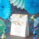 Elégante florale Neutre Baby In Bloom Baby shower Ballotin dispose de belles fleurs florales blanches, dorées et bleues et de verdure ainsi que de calligraphie moderne.