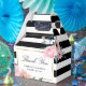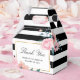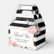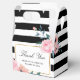 Personnalisez facilement ces boîtes noires, dorées et florales de mariage avec vos détails mariages. Ces ballotins de remerciement personnalisés peuvent être customisés à d'autres occasions, comme des anniversaires ou des douches nuptiales.