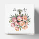 Une illustration d'aquarelle à couper le souffle qui présente un délicat bouquet de fleurs de pêche et de tourbières luxuriantes dressées contre un arrière - plan blanc immaculé. Les diamants scintillants sont nichés parmi les fleurs, tandis que la parties scintillant argentée scintillante accentue gracieusement les coins, ajoutant un air de luxe et de sophistication.