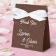 Bienvenue à vos ballotins de mariage élégants et personnalisés qui font un souvenir intemporel pour vos invités. Ces beaux ballotins ont une police de caractères marron chic avec vos noms et date mariage imprimés sur eux. Ils sont le moyen idéal de partager un cadeau sincère et une mémoire durable de votre journée spéciale.