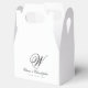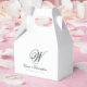 Thank guests in style with these Elegant Classic Last Name Initial Wedding Favor Boxes, featuring a timeless monogram design. The clean black initial on crisp white gabled boxes creates a sophisticated look that complements both classic and modern wedding décor. Perfect for candies, small treats, or keepsakes, these favor boxes add a personalized and elegant finishing touch to your celebration.