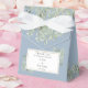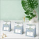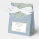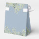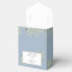 Elégante boîte de faveur de mariage aquarelle verte avec feuilles verts délicats sur un arrière - plan bleu poussiéreux encadrant votre message de remerciement dans la typographie moderne. Une façon parfaite de remercier vos invités ! Conçu par Thisisnotme©