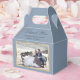 Elégant ballotin photo mariage bleu et or poussiéreux. Personnalisez facilement ces boîtes de faveur de mariage avec vos détails mariages. Nos ballotins de mariage personnalisés sont parfaits pour votre mariage classique bleu et or poussiéreux. Ces ballotins de remerciement personnalisés peuvent être customisés à d'autres occasions, comme des douches nuptiales.