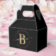 Féminin, tendance, moderne, élégant, rose noir et or monogramme initial nom script personnalisé boîte de faveur monogrammée. Caractérisé par un monogramme initial et un nom féminin script dans une police de queue de calligraphie manuscrite et un cadre de cercle pointillé autour de votre nom. Idéal pour un anniversaire, une douche de mariée, un mariage, une fête d'anniversaire de 16 ans et une douche de bébé, une soirée de filles, un anniversaire de mariage et plus encore.