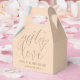 Cette boîte de faveur de mariage minimaliste de pêche douce et élégante script peut être personnalisée avec vos informations dans la typographie chic. Conçu par Thisisnotme©