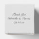 Personnalisez la jolie boîte de faveurs de mariage blanc marguerite élégante avec les noms de la date de la mariée, du marié et de la cérémonie de mariage et remplissez avec vos faveurs de fête ou petits cadeaux de remerciement pour vos invités. Ces élégantes boîtes de faveur de mariage botanique personnalisées comprennent une photographie florale d'une fleur de marguerite blanche, collier de perle et anneau de fiançailles de diamant coupé de princesse carré et un arrière - plan gris clair.