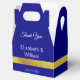 Elégant script blanc personnalisé (illustré : Merci) est au sommet de cette marine et ballotin d'or. Un faux groupe d'or fait le tour de la boîte. Vous pouvez personnaliser le ballotin bleu marine et or avec un texte blanc pour avec un nom ou des noms et la date de l'événement. Tout le texte peut être modifié ou supprimé. Le look or est un rendu artistique (pas de papier peint).