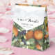 Jolie boîte de faveur de célébration de mariage élégante, moderne et bohème pour votre occasion spéciale ! La boîte de faveur bohème élégante avec 'amour et remerciements' dans une typographie informelle noire en ensemble aura l'air spéciale sur votre table de mariage. Bordure de feuillage de feuille aquarelle dans des feuilles vert foncé et vert clair entourées de fruits orange de la nature avec les détails du nom et de la date de votre mariage ! Conçue pour se coordonner avec notre collection de mariage Orange Leaf Foliage.
