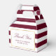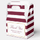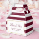 Personnalisez facilement ces boîtes de faveur de mariage rayées bordeaux avec vos détails de mariage. Ces ballotins de remerciement personnalisés peuvent être customisés à d'autres occasions, comme des anniversaires, des nuptiaux ou des baby showers.