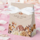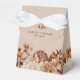 Cet élégant ballotin mariage de automne présente des feuilles d'aquarelle peinte à la main en orange brûlé et en terre cuite, des dahlias crème et beige, et de beaux roses de couleur rouille sur un arrière - plan taupe avec le nom de la mariée et du marié et la date du mariage en texte marron. Trouvez les articles correspondants dans la collection Taupe Autumn Romance.