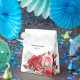 Une boîte de faveur de mariage avec élégante aquarelle rose et roses rouges sur un arrière - plan blanc et espace pour le nom et la date mariage de la mariée et du mariée.