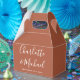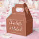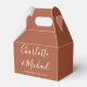 Elégant ballotin de mariage avec des noms de script signature chic et une date spéciale sur un arrière - plan en terre cuite. Vous pouvez personnaliser avec votre propre message de remerciement au contraire. Une façon parfaite de remercier vos invités ! Conçu par Thisisnotme©