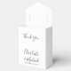 Un ballotin de mariage élégant avec des noms de signature violet stylisés et une date spéciale dans la typographie moderne. Vous pouvez personnaliser avec votre propre message de remerciement sous le couvercle. Une façon parfaite de remercier vos invités ! Conçu par Thisisnotme©