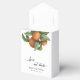 Joli, élégant, moderne et bohème ballotin de célébration mariage pour votre occasion spéciale! Boho élégant ballotin avec "amour et merci" dans un ensemble noir de typographie informelle sera spécial sur votre table mariage. Bordure de feuillage de feuilles d'aquarelle en feuilles vert foncé et clair entouré de fruits oranges nature avec votre nom mariage et les détails de la date! Conçu pour coordonner avec notre collection de mariages de feuillage orange.