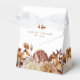 Élégante Boîte De Faveur Mariage Feuille. Cet élégant ballotin mariage de automne est décoré de feuilles d'aquarelle couleur brun et orange, de terre cuite, de dahlias crème et beige, et de beaux roses de couleur rouille sur un arrière - plan blanc avec le nom de la mariée et du marié et la date du mariage en texte marron. Trouvez les articles correspondants dans la collection White Autumn Romance.