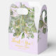 Ces boîtes de mariage violet clair et Merci or sont dotées d'eucalyptus vert et de feuilles verts et or. Pour une personnalisation plus avancée de cette conception, cliquez sur le lien personnalisé.