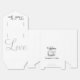 Elégant blanc noir mariage Favor Boxes avec noir ruban noir Bow. Ballotins Mercis pour réception de mariage ou autres occasions spéciales. Personnalisez avec les prénoms et la date du Mariage de la mariée et de la mariée. L'amour est écrit sur le dos en écriture argentée. Conception originale © TamiraZDesigns.