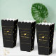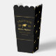 A modern, elegant and simple minimalist graduation party Popcorn Favor Boxes design features a black background and golden line border include a graduation gold cap icon pattern and stylish typography golden lettering. These favor boxes perfect for graduation celebrations party. Customise with your own text, fonts and colors or remove and celebrate your graduation party.