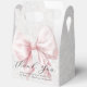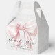 Une boîte de faveur féminine magnifique avec un grand nœud rose pastel aquarelle sur un fond subtil de motif marbré gris et ivoire. Le nœud est incliné d'un côté, ajoutant une touche de charme. Un modèle de texte est inclus pour personnaliser avec vos informations. Cet article fait un excellent contenant de remerciement pour une douche de mariage, une fête d'anniversaire ou un autre événement, il suffit de personnaliser le texte en conséquence.