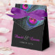 Belles boîtes de mariage bleu turquoise et rose chaud paon. Vous pouvez personnaliser cette élégante boîte de faveur mariage en plumes paon rose turquoise, bleu et rose chaud avec votre texte dans le style de police que vous aimez, ajouter une couleur arrière - plan et changer la couleur ruban.